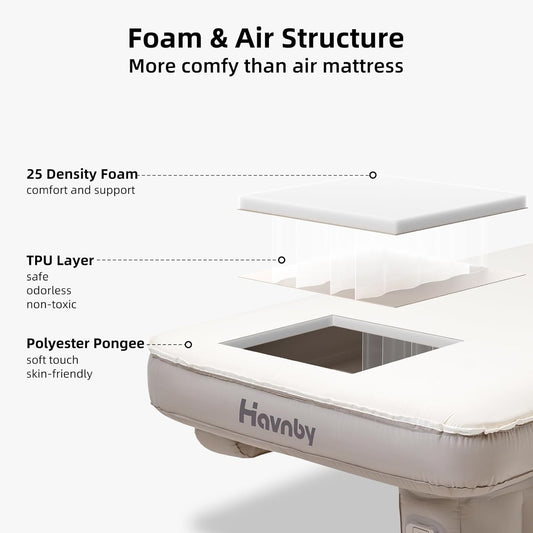 CozyPad Car Air Foam Mattress for Toyota Highlander Second Row, Custom Fit Inflatable Back Seat Bed with Built-in Pump, TPU Layer, Foam Cushion Support for Kids, Pets and Adults