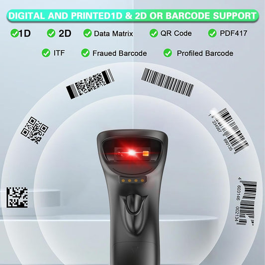 Wireless Desktop Barcode Scanner & Portable Wireless Barcode Scanner Bluetooth 2 in 1 USB 1D 2D Bar Code Scanner for Inventory,USB 1D 2D Bar Code Scanner 2.4Ghz for Tablet iPhone Android iOS PC ipad
