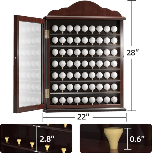 MR 63 Golf Ball Display Case, Executive Golf Ball Cabinet, Wall Mount Golf Ball Shadow Box with Wood Tees, Wall Rack Holder Solid Wood Frame with 98% UV Protection Lockable Acrylic Glass Door