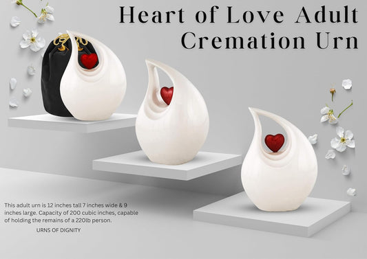 Heart of Love Cremation Urn for Human Ashes Adult, Large Funeral Urn for Ashes, Decorative Memorial Burial Urn for Loved One (White Red, Adult) White Red Adult Non-Customize