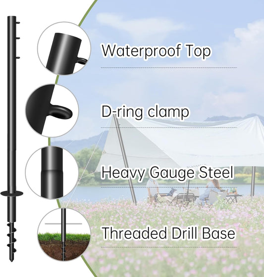 Shade Sail Poles, 1 Pack Heavy Duty Outdoor Sun Shade Sail Pole with Spiral Drill Bit, Support Awning Canopy Outdoor Poles for Garden Yard Backyad (1) 1 Lawn Ground use