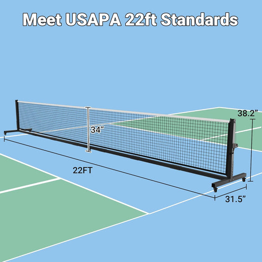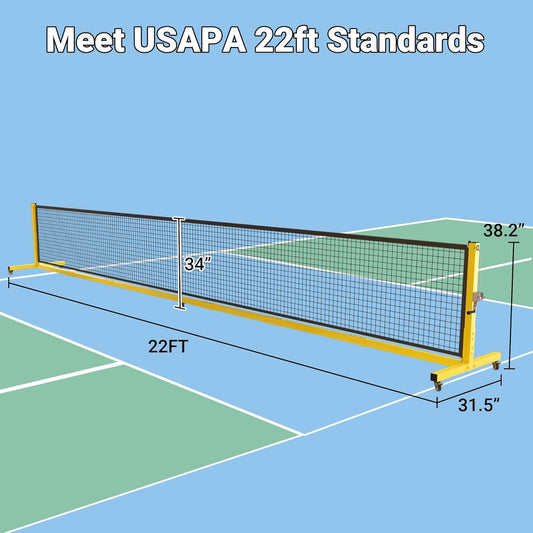 Pro Pickleball Net - 22ft Tournament-Grade, Heavy Duty Steel Frame, 30-ply Sturdy Net, Hand Winch System, Universal Wheels, 600D Carrying Bag, Perfect for Indoor & Outdoor Use, Black/Yellow