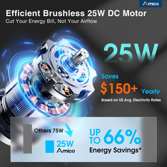 Amico 12" Smart Shutter Exhaust Fan with Thermostat & 8 Speed, 1282 CFM (Up to 1800 Sq.Ft), 25W Energy Saving Brushless DC Motor, Wall Mount Garage/Attic/Greenhouse Vent Fan, Plug & Play, FCC & ETL