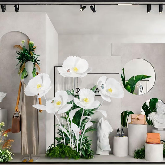5 Pcs Giant Flower for Decoration 5.8 Ft Large Felt Fabric Artificial Flowers Standing Floral Life Size Flower Decor for Wedding Birthday Parties Gardens Hotels Offices Home(White) 5pcs White