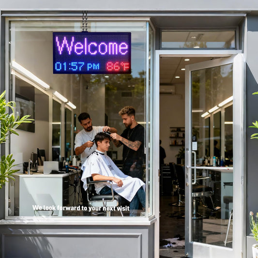 LED Open Closed Sign for Business, 20"x11" Waterproof Outdoor Store Sign with Time, Temperature & Business Hours Display | Remote Control, Auto-Dimming, Bilingual (Abierto/Cerrado) for Shop, Bar