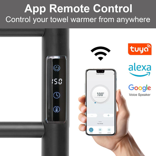 Electric Towel Rack with Voice Control for Alexa & Google Home,TUYA - Wall-Mounted Bathroom Heating Towel Warmer,Plug-in,Stainless Steel Material (Black with WiFi, 6 Bar) 6 Bar Black With Wifi