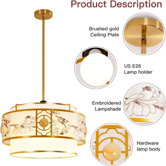 Modern Classic - Drum-Shaped Chandelier, 19.6-inch Round cage-Style lamp, with White and Gold finishes.