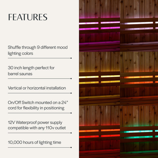 Almost Heaven Saunas Light Bar Set 30", Placed on Sauna Bench or Wall, Sauna Accessories for Traditional & Infrared Saunas, Waterproof Power Supply, 10,000 Hours of Lighting (30" - RGB Color Changing)