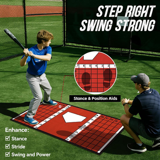 Baseball Hitting Mat, 7mm Thickened, Anti-Curl Reinforced Edge Wrapping Batting Mat with Grid Alignment, Anti Slip TPR Base, Home Plate Mat for Garage Backyard, 6.5x4 ft