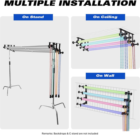 Photo Backdrop 4 Roller Support System, 118' Stainless Steel Crossbars Manual Backdrop, Stand, Wall, Ceiling