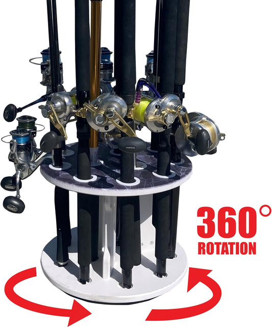 Waterproof Marine Grade 12 Spinning Fishing Rod Holder Dock/Garage Storage Rack, Gray/White