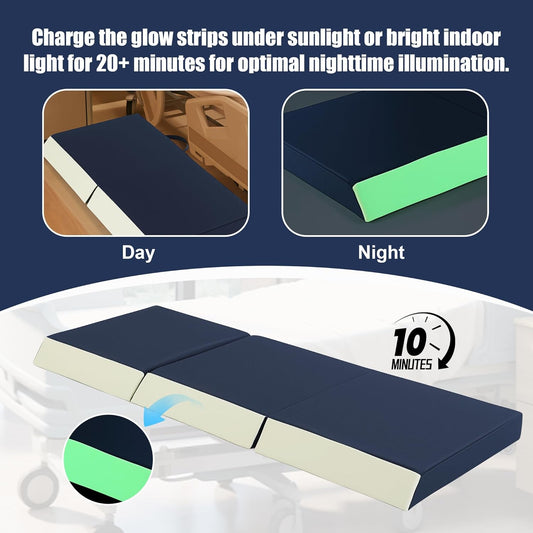 3-Inch Thick Fall Mat for Elderly, Waterproof Tri-Fold Bedside Safety Mat with Glow-in-The-Dark Strips, Anti-Slip