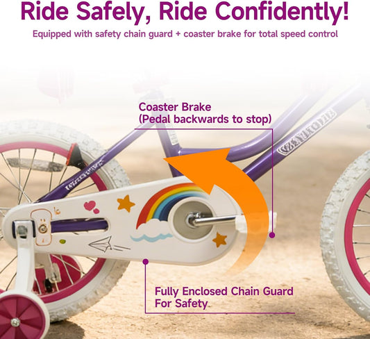 Girls Bike, 12-18 Inch Children's Bicycle for 2-9 Years Old, Beginner Kids Bike with Training Wheels, Doll Seat & Basket