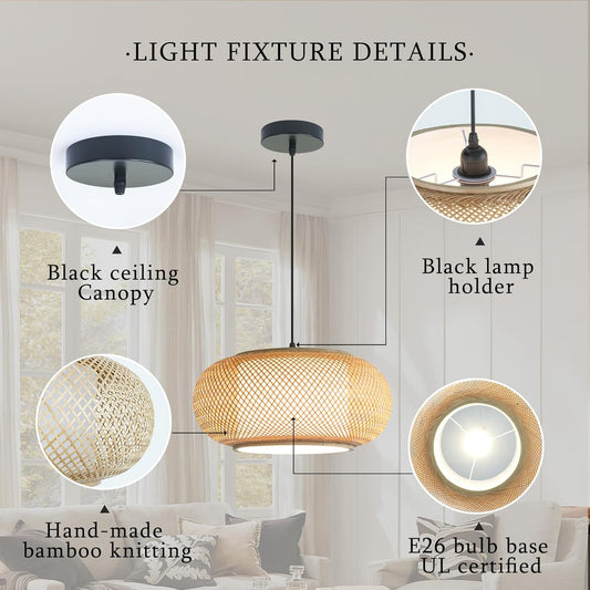 Dining room light fixture Japanese light ,Boho Bamboo pendant light ,kitchen island pendant lights, Nordic Log Style