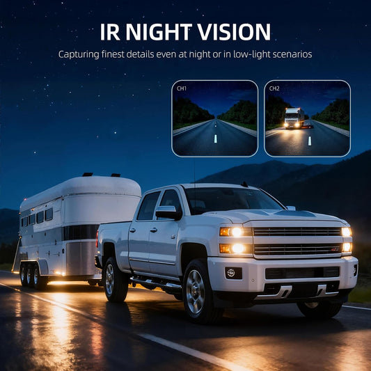 Backup Camera System for Truck, 7-Inch Monitor with 2 Cameras, Waterproof Night Vision