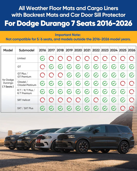 Floor Mats For Dodge Durango 2016-2026 (7 Seat), 11 Pcs TPE Custom Car Mat All Weather Floor Mats & Cargo Liner for Dodge Durango 2016 2017 2018 2019 2020 2021 2022 2023 2024 2025 2026