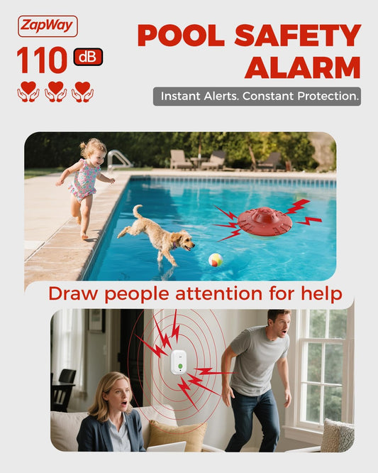Pool Alarm with Indoor Receiver, Ultra Loud Floating Alarm for Inground & Above Ground Pools, Adjustable Sensitivity for Backyard Water Safety with Children & Pets, Red Green