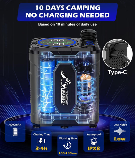 Upgraded Portable Shower for Camping with Heater, Rechargeable Camping Shower with Intelligent LED Display, 5 Gal Foldable Bucket, 4 Spray Modes, Portable Shower for Travel, Pet Bath, Car Washing