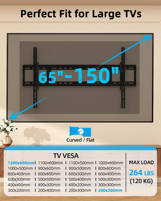 HOME VISION Heavy Duty Tilting TV Wall Mount for 65-150 Inch Flat & Curved TVs, 264lbs Load Capacity, 2.44" Low Profile Wall Mount TV Bracket, Max VESA 1200×600mm, Fits 16/18/24/48 Inch Wood Studs