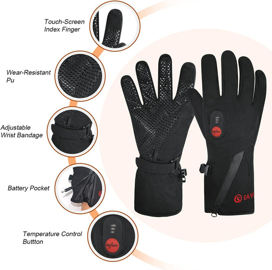 day wolf Electric Heated Gloves for Men Women, Rechargeable Waterproof Winter Hand Warmers with Touchscreen for Outdoor Activities(Small)