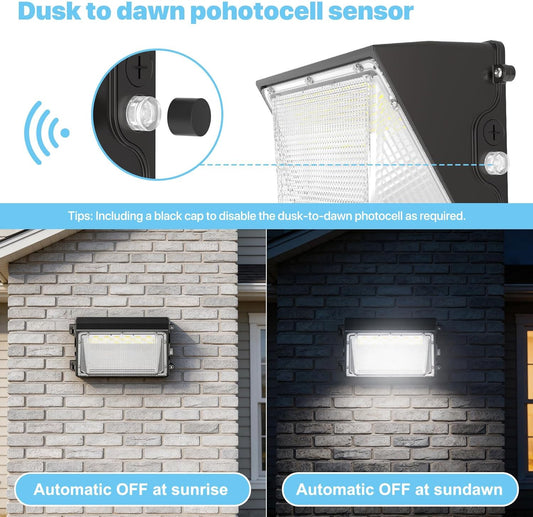HYPERLITE LED Wall Pack 120W: 18000lm LED Security Flood with Dusk to Dawn Photocell - Industrial Outdoor Wall Lights Out Door 2Packs for House Warehouses Driveway UL Listed 120W-2Pack