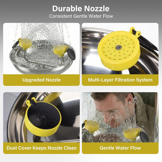 Emergency Eye Wash Station with Shower, 304 Stainless Steel Eye Wash and Shower Combination, Floor Mounted Stand Up Eyewash Station, Safety First Aid for Industrial, Commercial and Lab Use