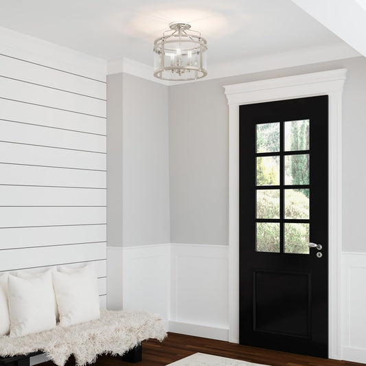 Quoizel Norfolk Semi-Flush Mount Ceiling Light Fixture, 11.875 inch 3-Light Brushed Nickel Hanging Light for Hallway, Kitchen, Bedroom, Dining, Living Room, or Office