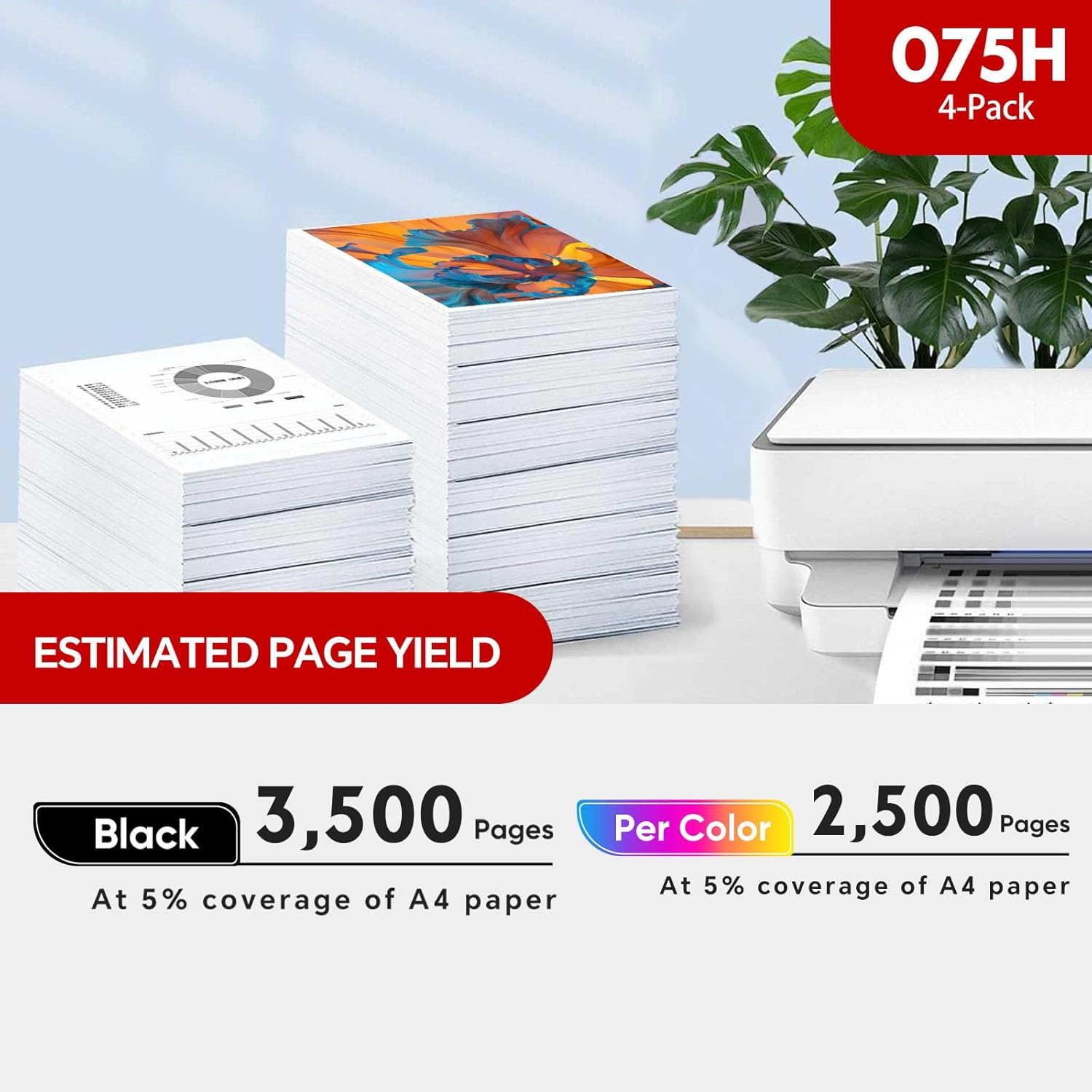 With Upgraded Chips: 075 high yield ink cartridge replacement for 075/075H toner cartridge set is equipped with latest chips, ensuring highest compatibilty for MF665Cdw,LBP646Cdw and LBP647Cdw series printer
