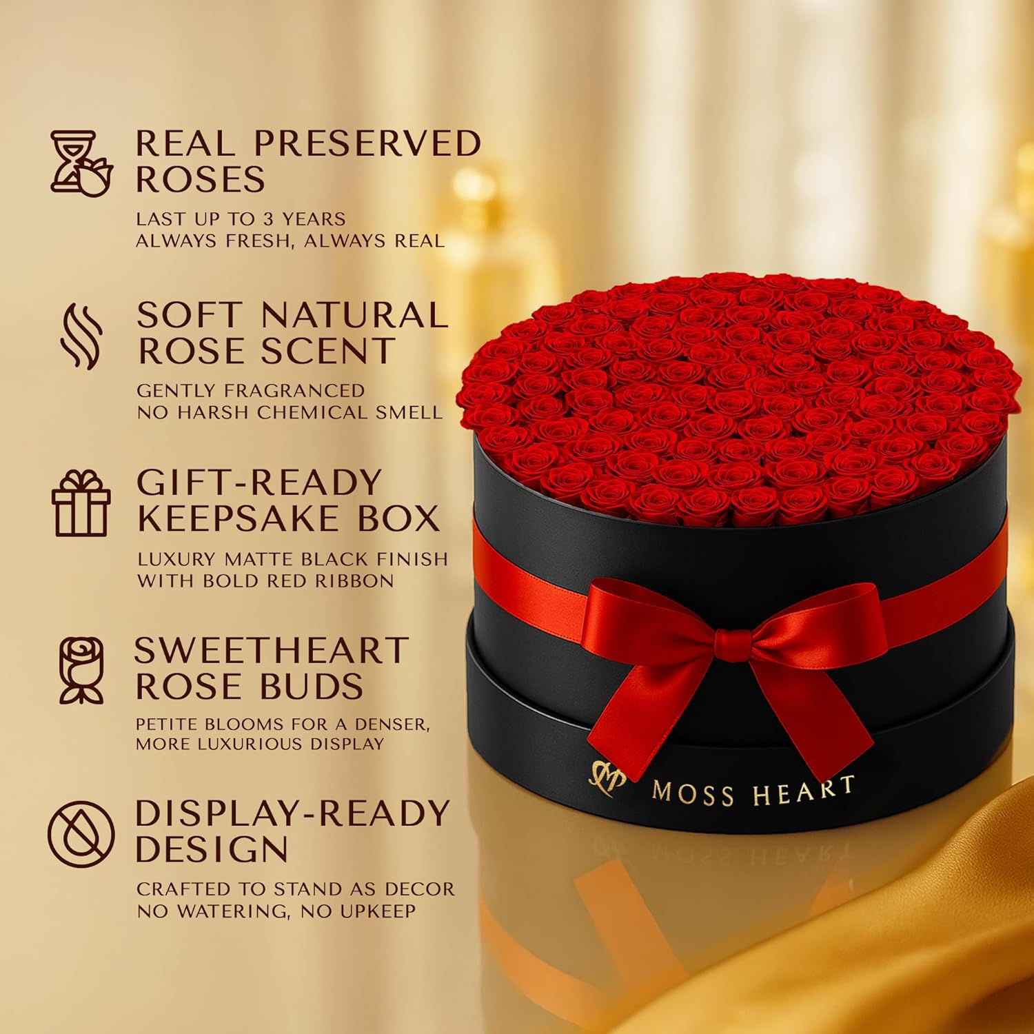 Heartfelt Gift for Her: Express eternal love with our preserved 100-Piece forever roses bouquet in a box. A luxury within reach, our forever roses in a box Mother’s Day, Valentine’s Day, wedding & anniversary gift for women creates lasting memories.