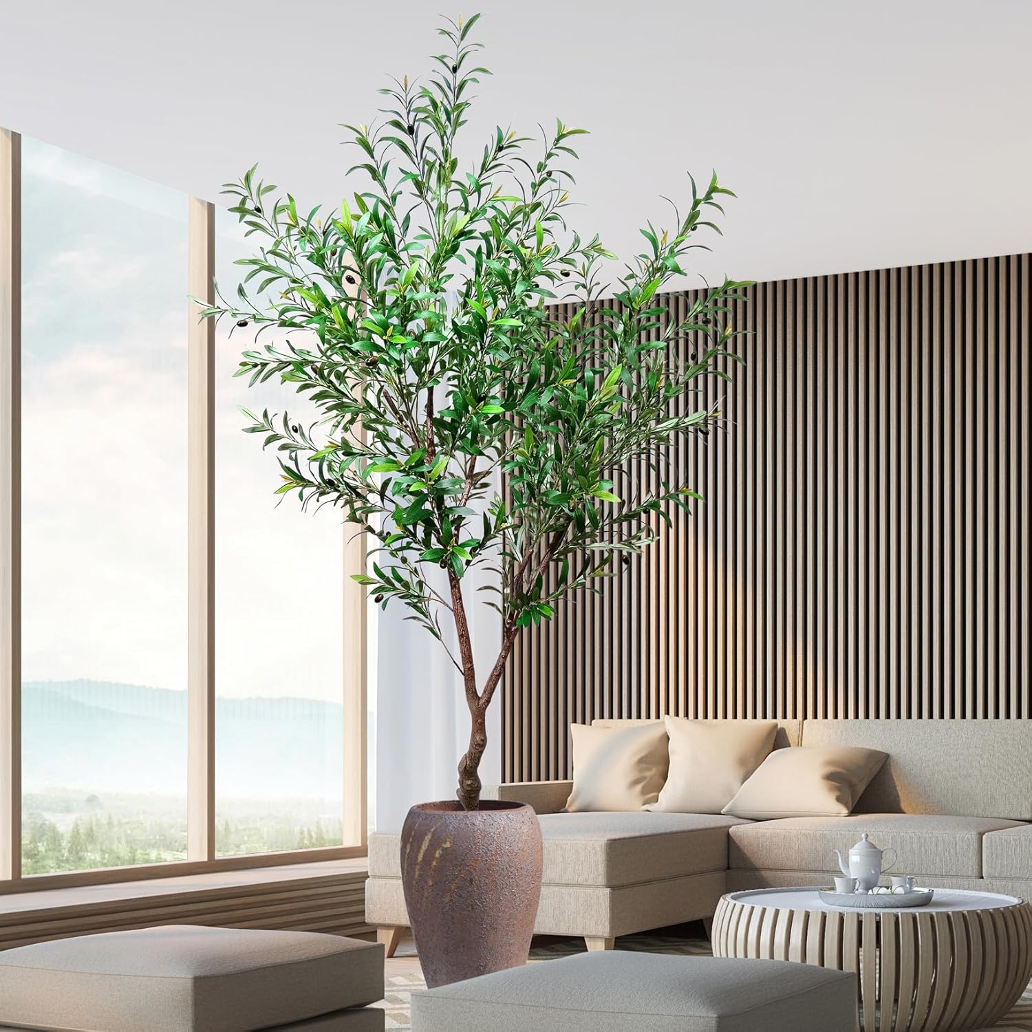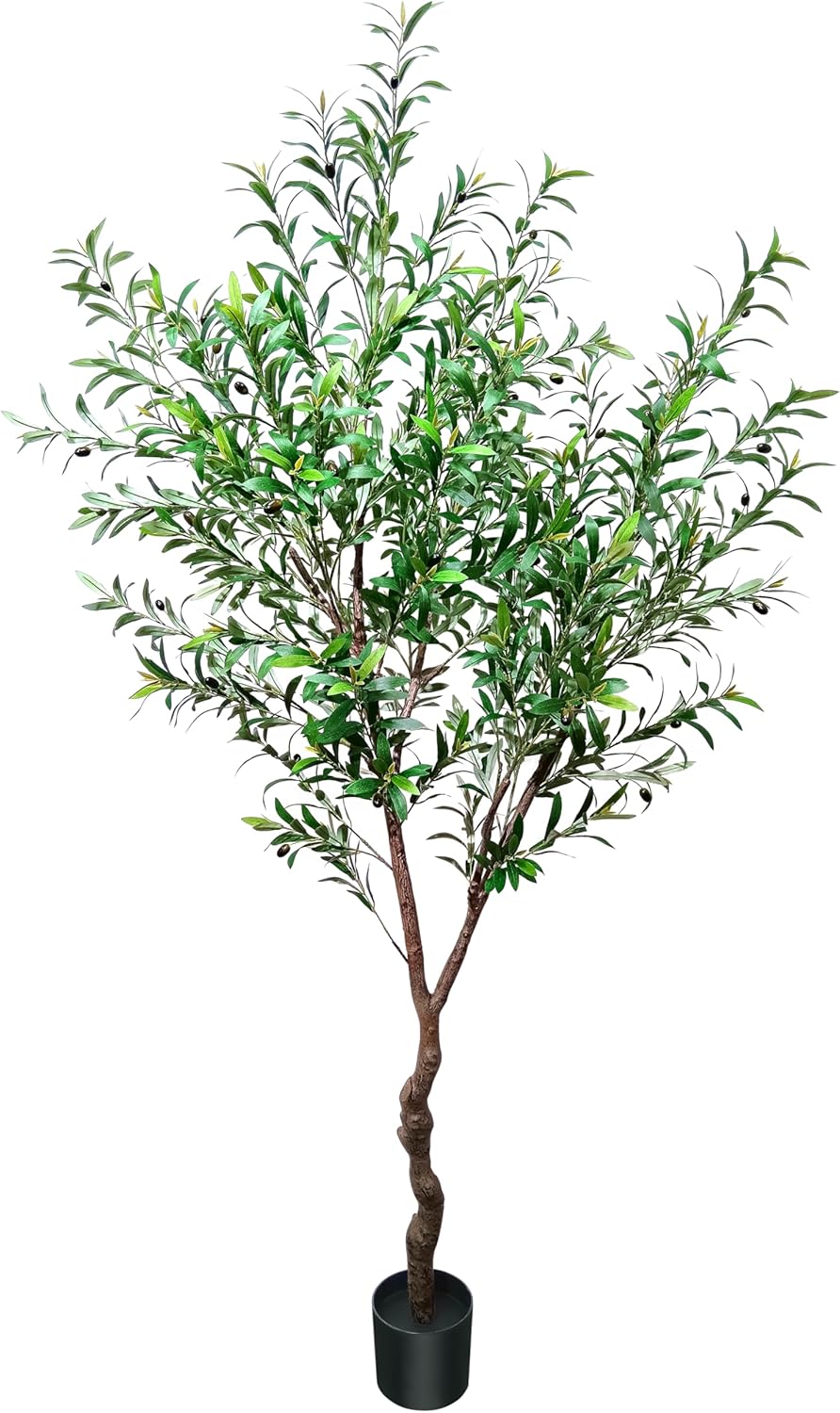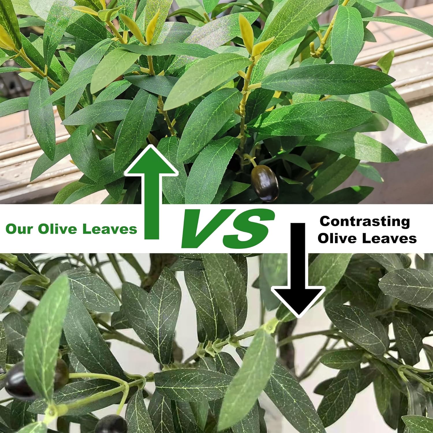 LIFELIKE DESIGN The faux olive tree, it realistically imitates the branch form of a real olive tree, and each branch stretches naturally. The texture of the leaves is fine and clear, as if one could feel the slight tremble when the breeze passes by. The color and shape of the fruits are no different from the real ones. It can perfectly blend into various indoor environments. Whether it is a cozy living room at home or an office full of modern atmosphere, it can be an excellent decoration like a real tree, weaving a wonderful picture of nature and tranquility for the space