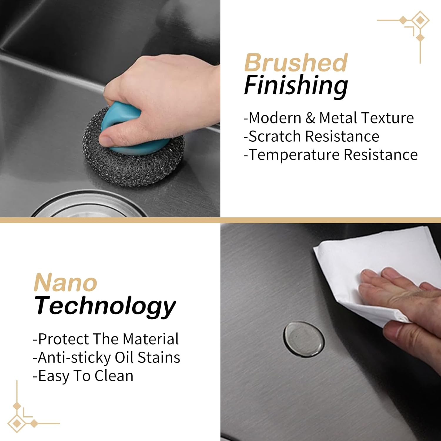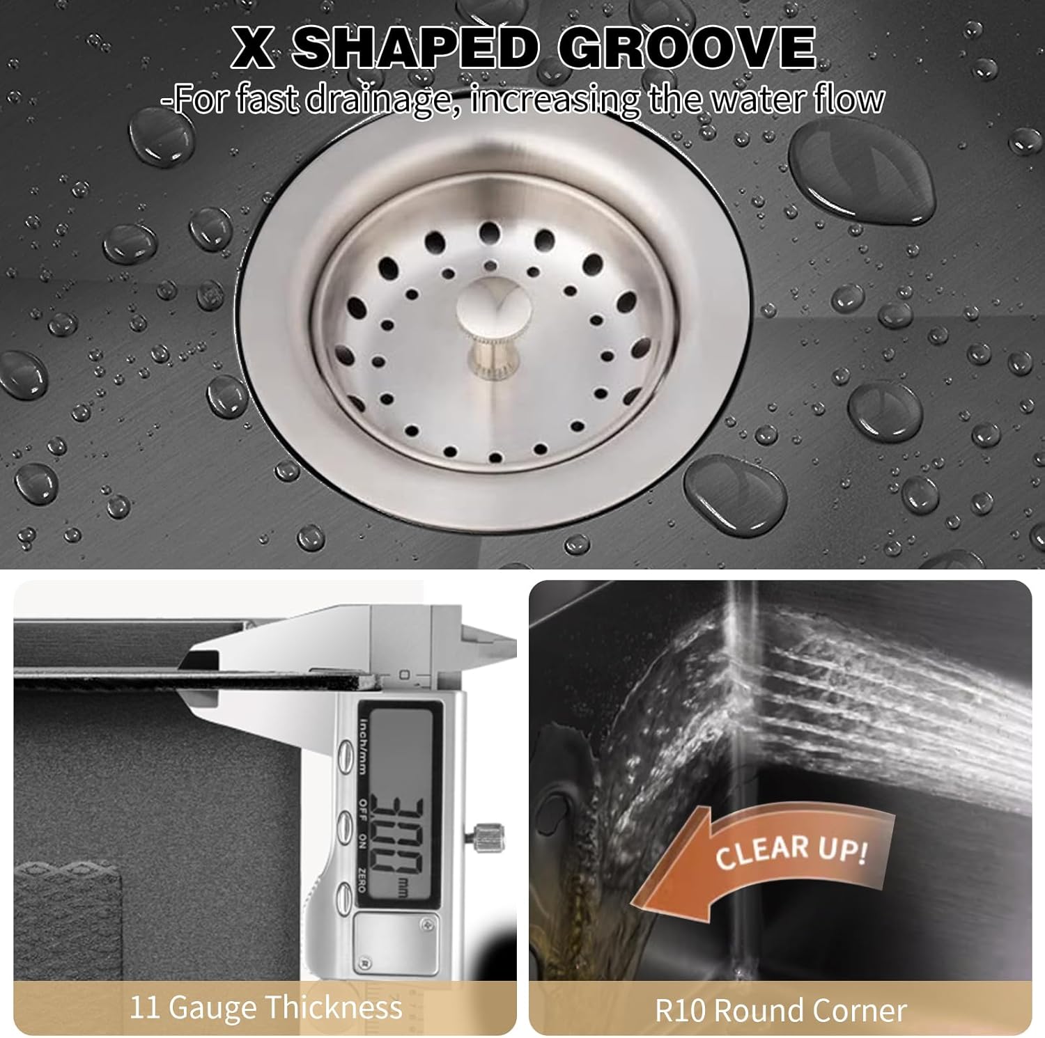 Surface Technology: Made from stainless steel, kitchen workstatinon sink with brushed surface technology is resistant to corrosion, stains, and scratches, ensuring its practicality and easy maintenance even with heavy daily use. Anti-condensation spray undercoating also helps prevent condensation buildup on the underside of the sink.