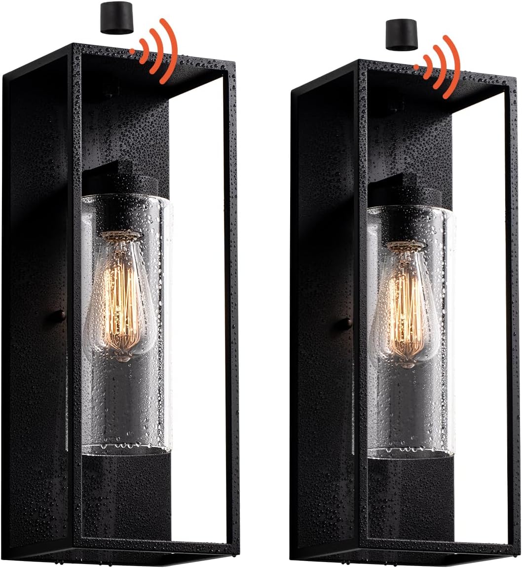 18' Dusk to Dawn Outdoor Wall Sconce 2-Pack Matte Black Rectangular