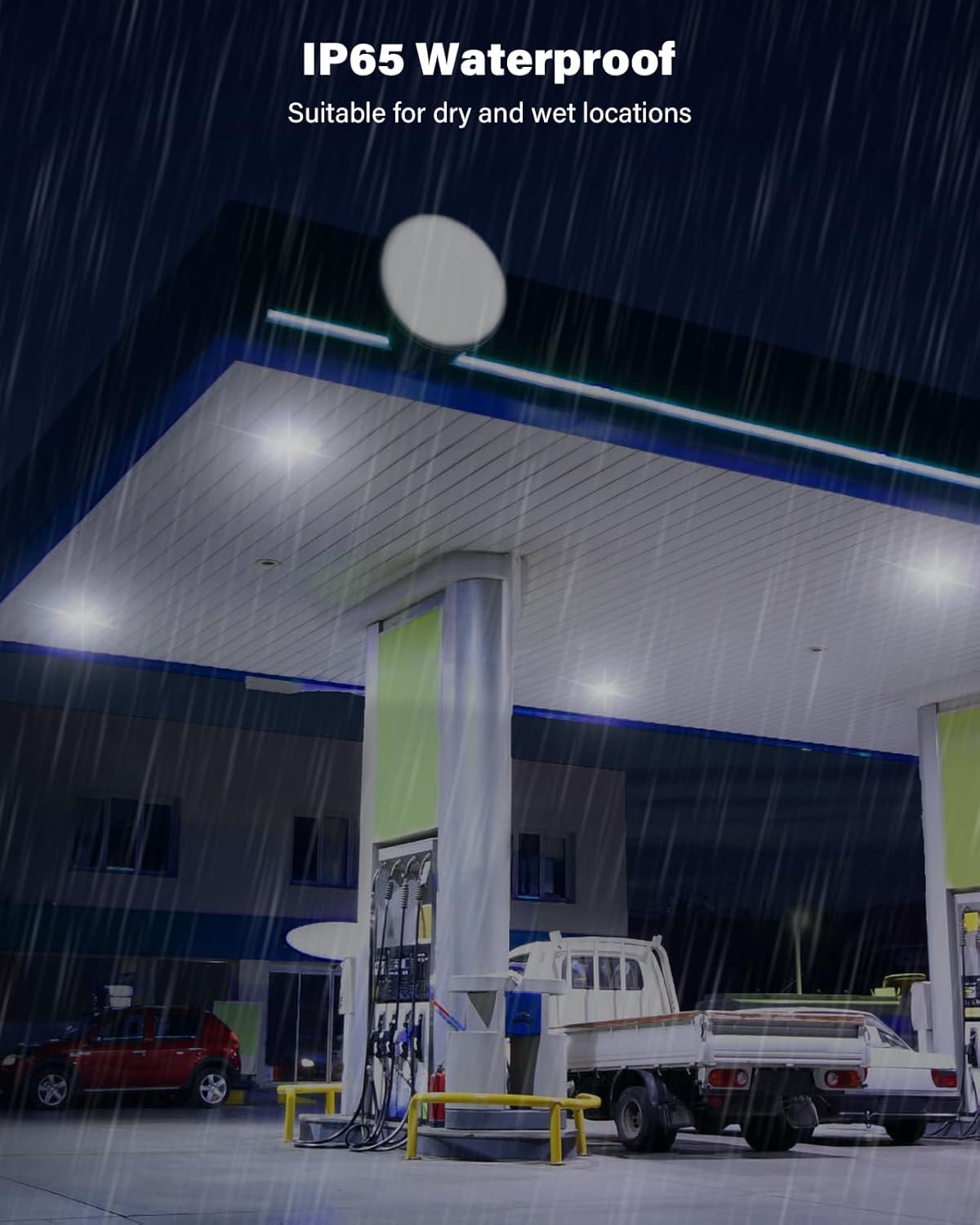 Versatile Applications: With an IP65 waterproof rating and an input voltage of AC120V, this UFO LED High Bay Light is perfect for a wide range of indoor and outdoor settings. Ideal for workshops, warehouses, garages, barns, shops, and more, it is designed to withstand even the harshest conditions.