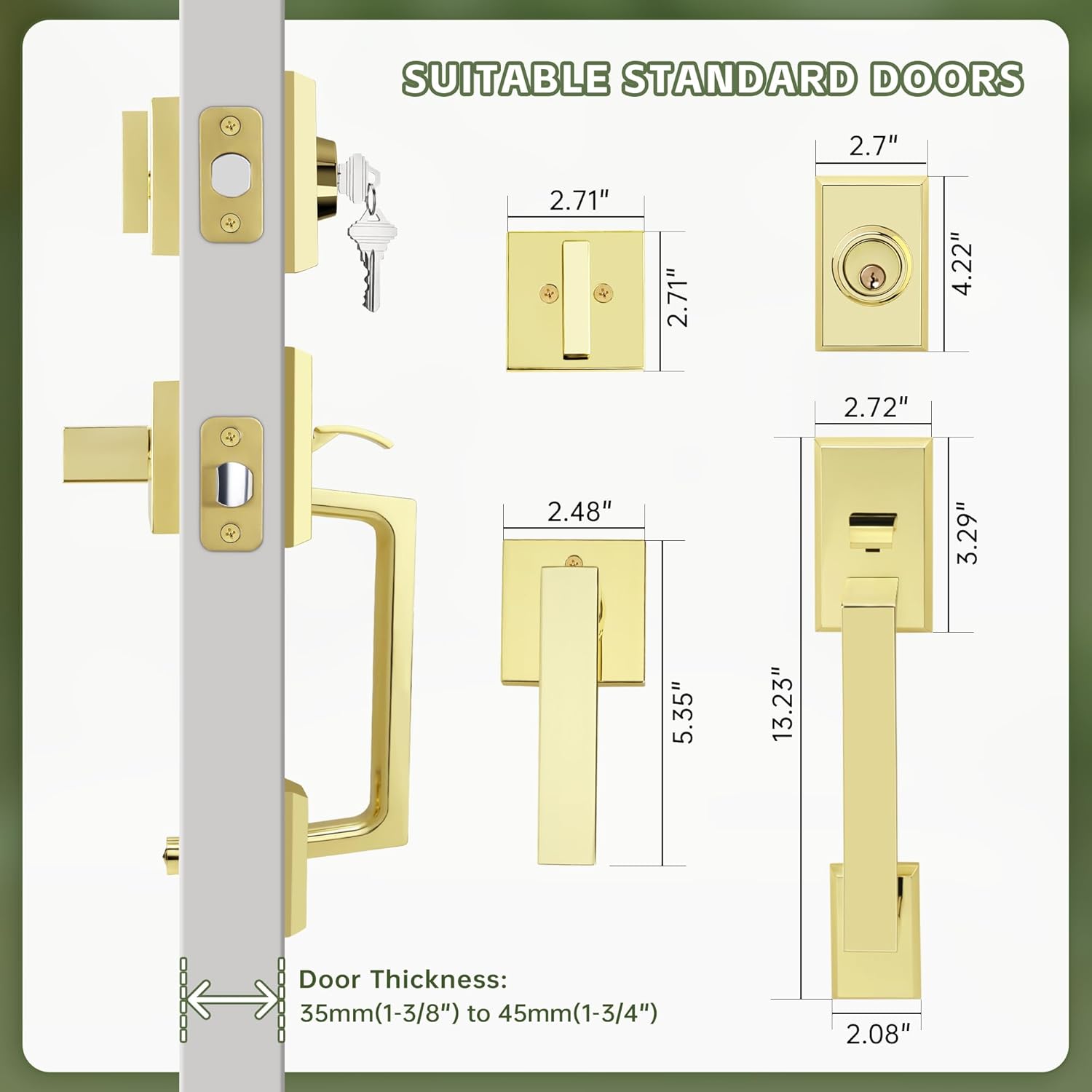 [Premium Materia] Made from heavy-duty zinc alloy and metal, the polished brass classic front door hardware set is engineered for long-term use, providing exceptional resistance to wear and tear.