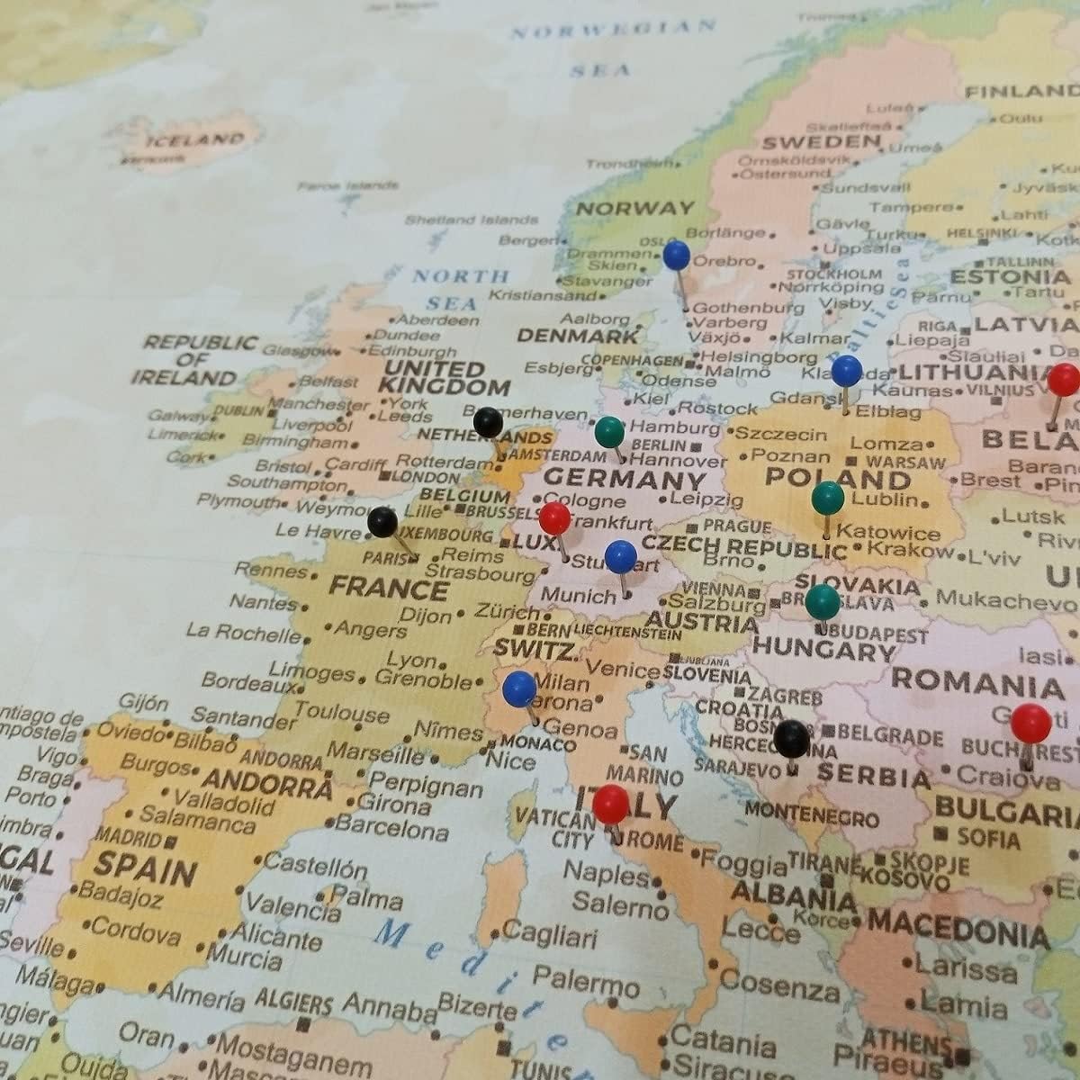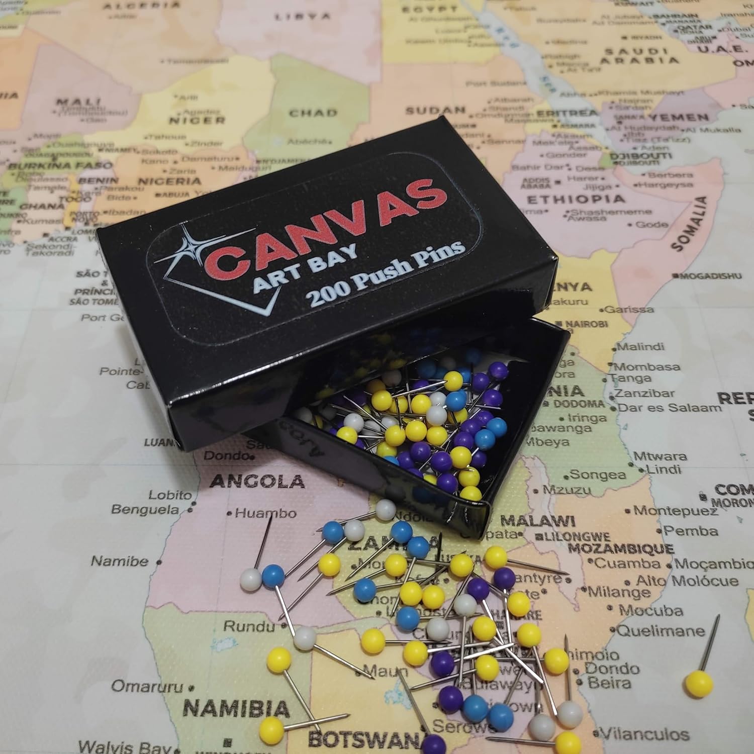 Classic Push Pin World Map, Canvas Art Bay Ready-to-Hang World Map, Pinboard (Medium)