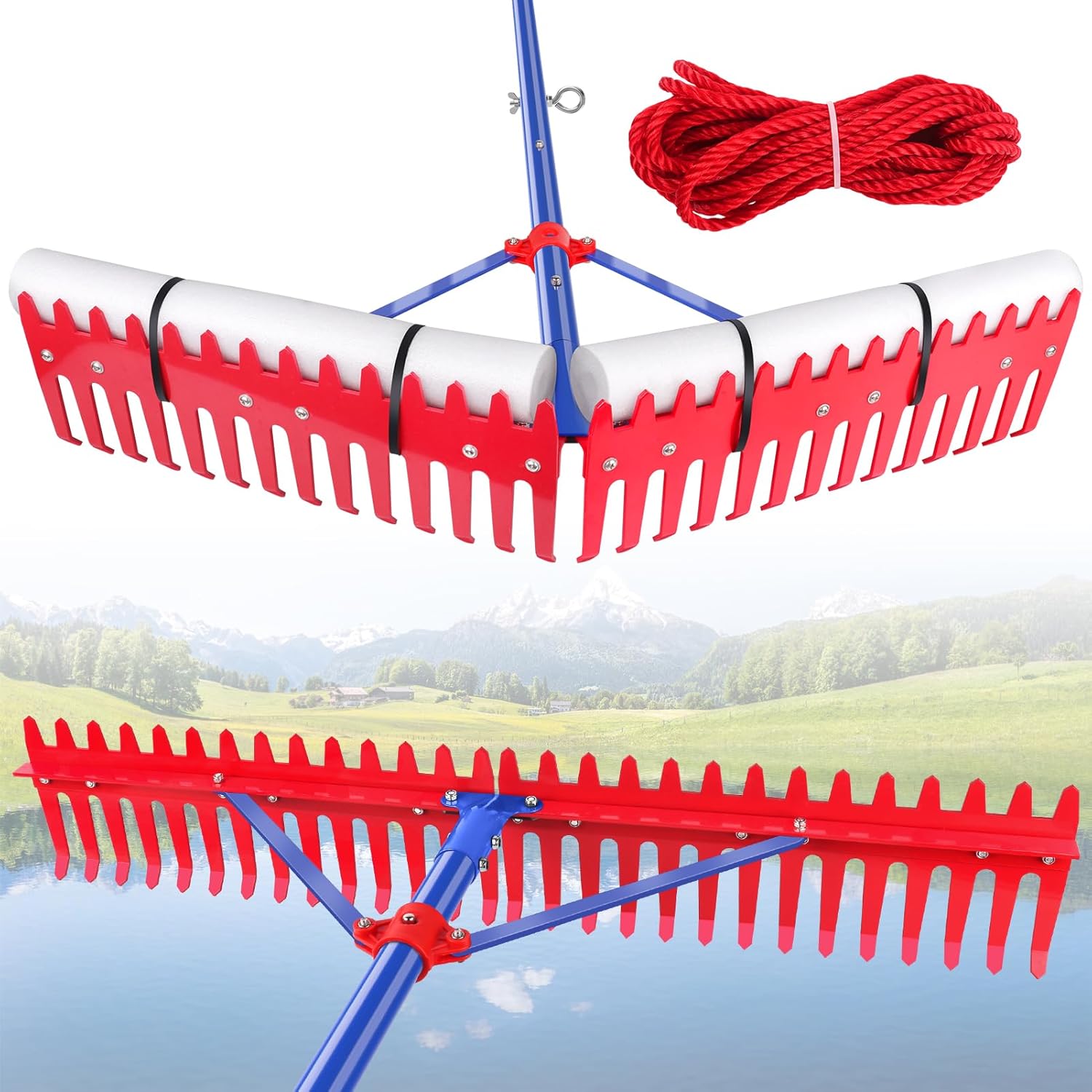 Lake Rake, Pond Rake Aquatic Weed Rakes, Large Heavy Duty Aluminum Aquatic Rakes with 7' Metal Tines