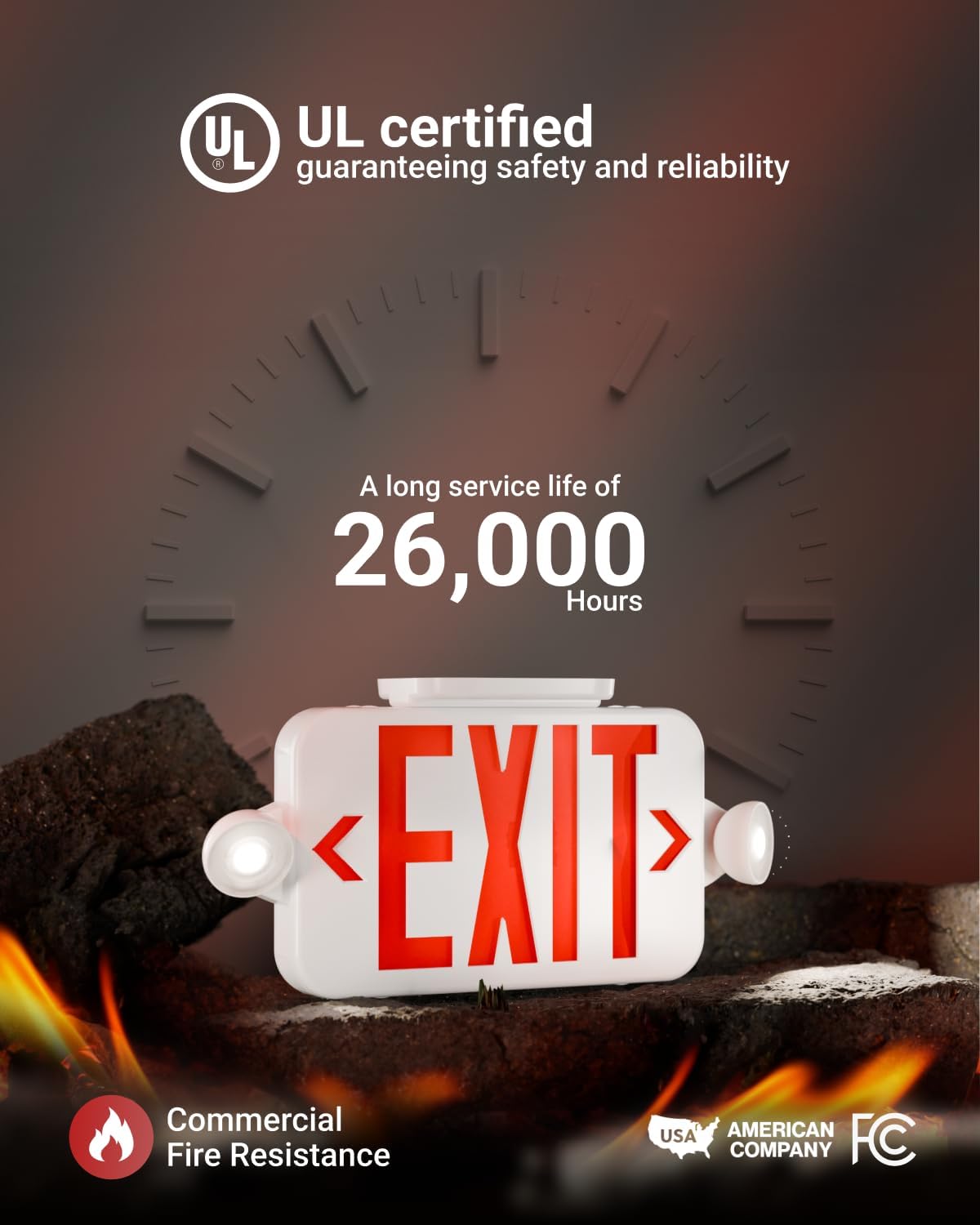 SAFETY FIRST - The exit sign features bright adjustable side lights, 6\' red letters visible from 100 feet, and a backup battery that provides 90 minutes of illumination during power outages.