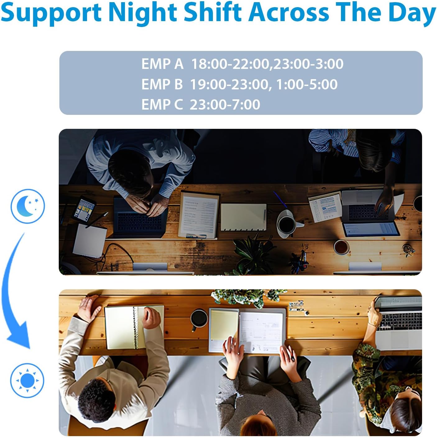Upgraded K4 Biometric Technology: The NGTeco K4 features advanced optical fingerprint recognition technology, enhancing sensitivity and adapting to various environments. This biometric time clock offers a flexible schedule without the need for shift setup, supporting both standard and overnight work.