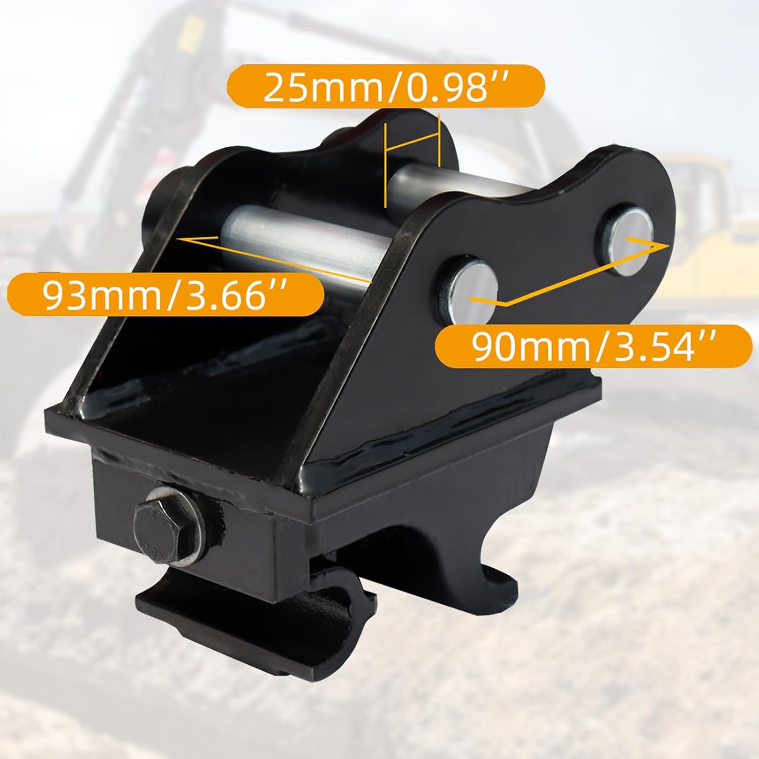 Highly Versatile: The quick hitch coupler attachments suitable for all 0.8-1.8 tons class mini excavators with a span of 3.66in/93 mm and a pin of 0.98in/25 mm