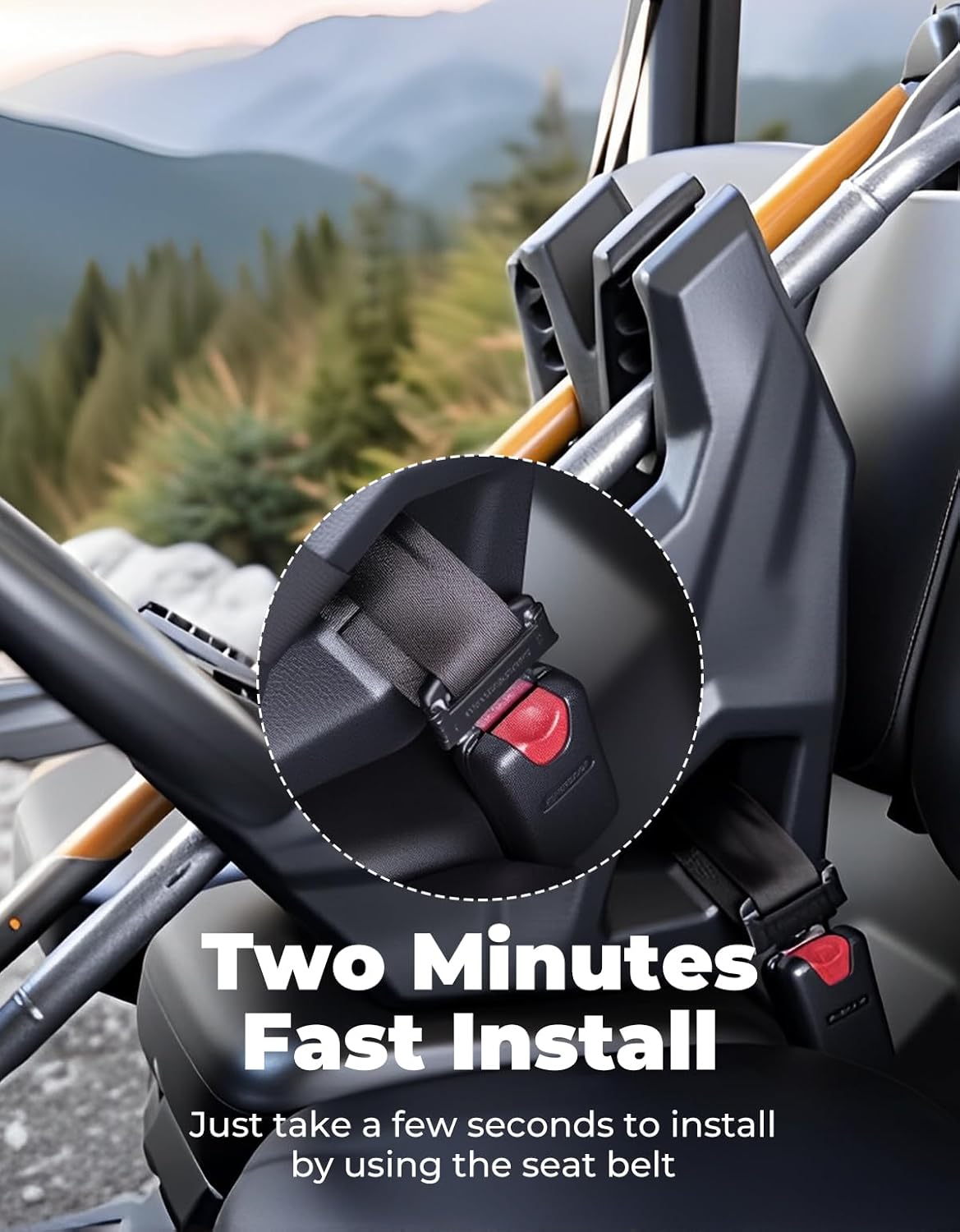 Easy to Install: No tool help is required. Use the seat belt to secure. We have two method to install by the product manual (NOTE: Choose one binding method based on the actual situation.)The whole installation process takes only seconds