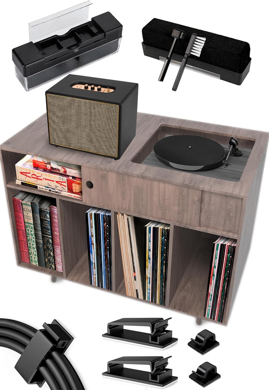 Space-Saving Vinyl player stand: Embrace efficient organization with a vinyl record storage cabinet that functions as a record player shelf. It`s a smart record storage cabinet for your collection.