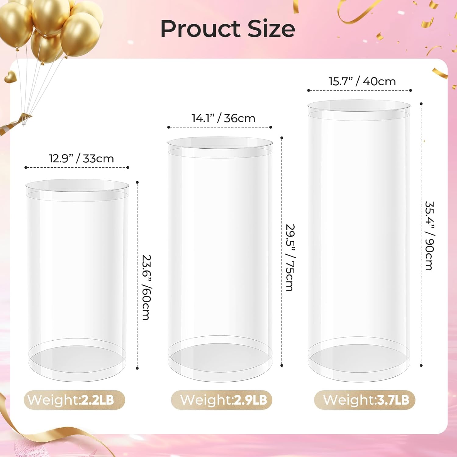 Cylinder Pedestal Stands for Party, 3 Pcs Clear Acrylic Display Pedestals 35.4', 29.5', 23.6'