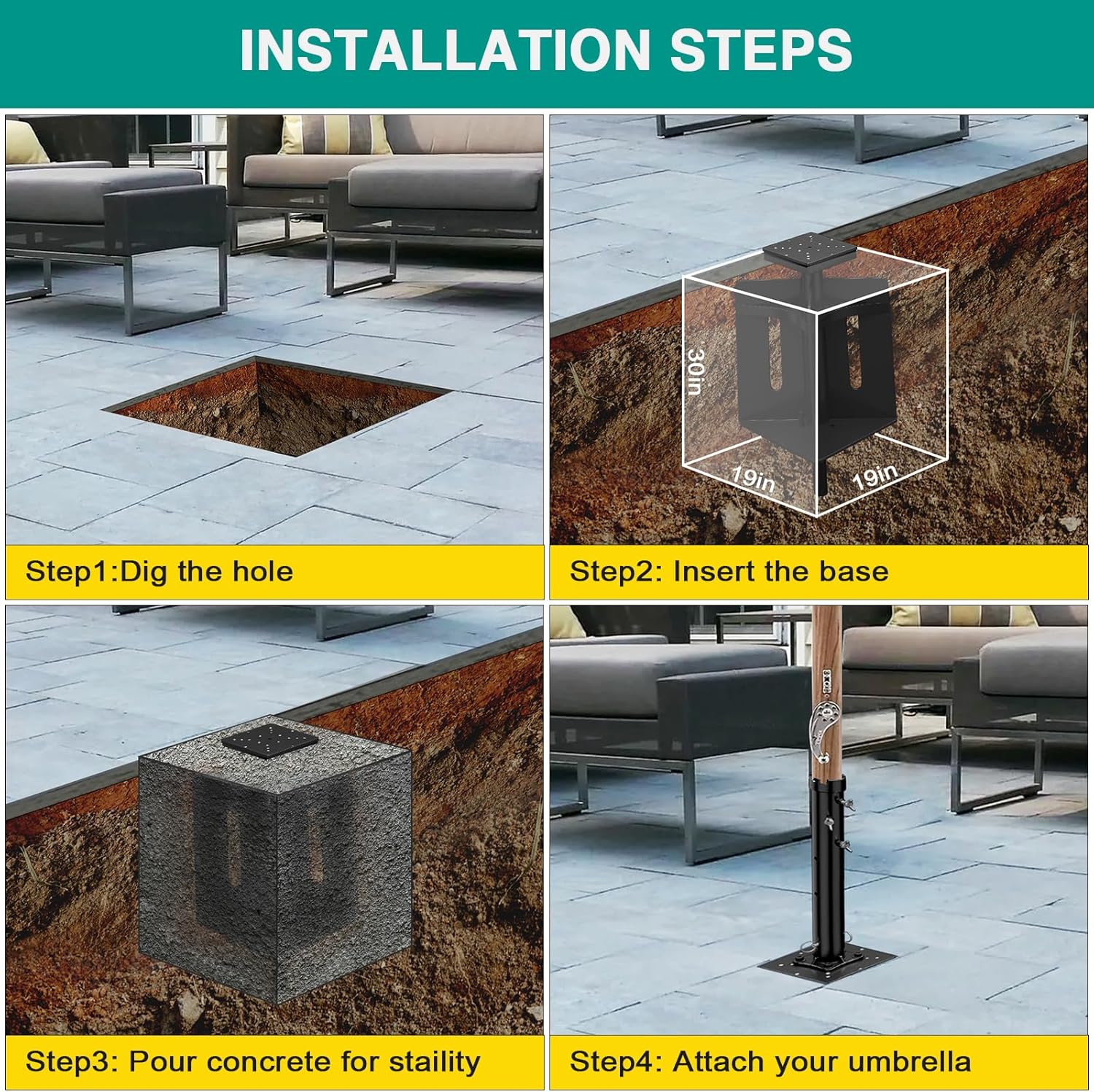 Mayset In-ground Umbrella Base with Umbrella Stand Tube Hanging Parasol Stand Holder Stainless Steels Outdoor Umbrella Base, Black