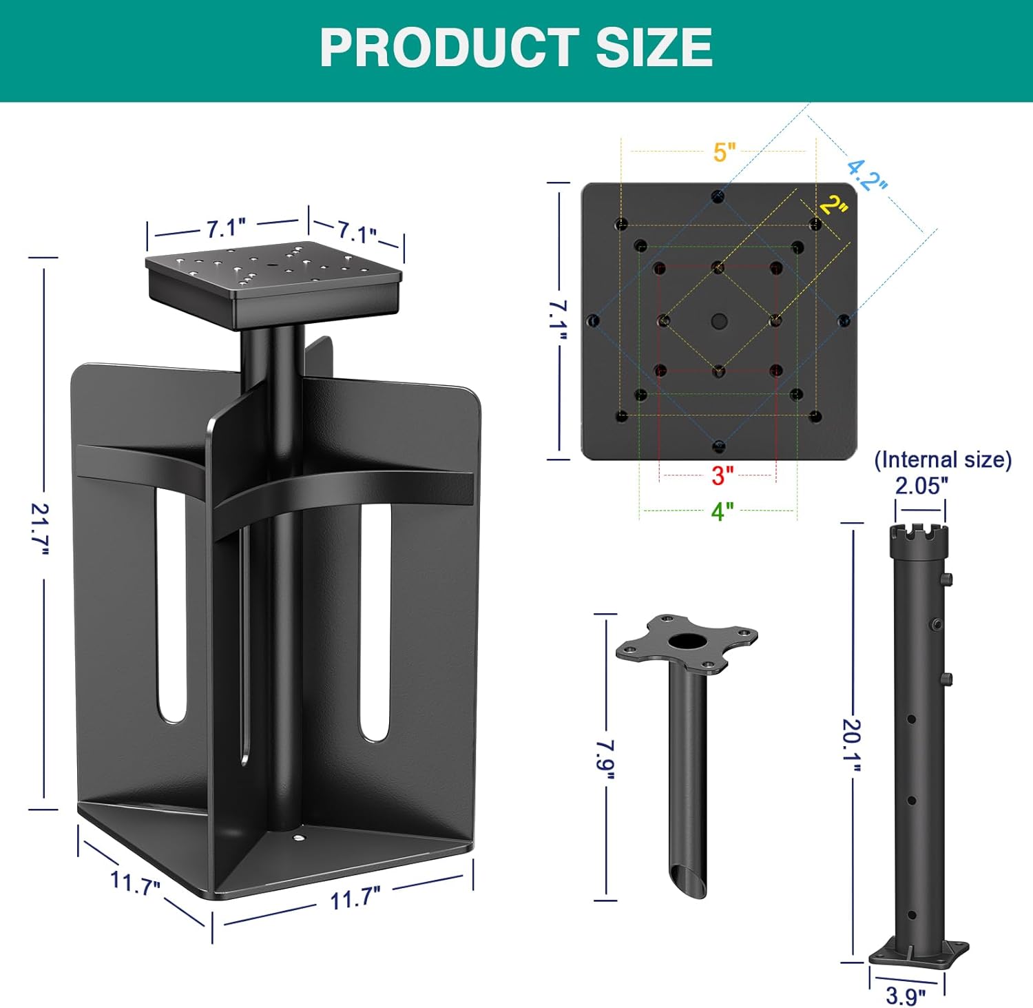 Product Size: overall dimensions is 11.7\' X 11.7\' X 21.7\'. the tube internal diameter is 2.05\', The umbrella base bracket is not only suitable for all sizes of cantilever umbrellas, but also for most upright outdoor umbrella bases