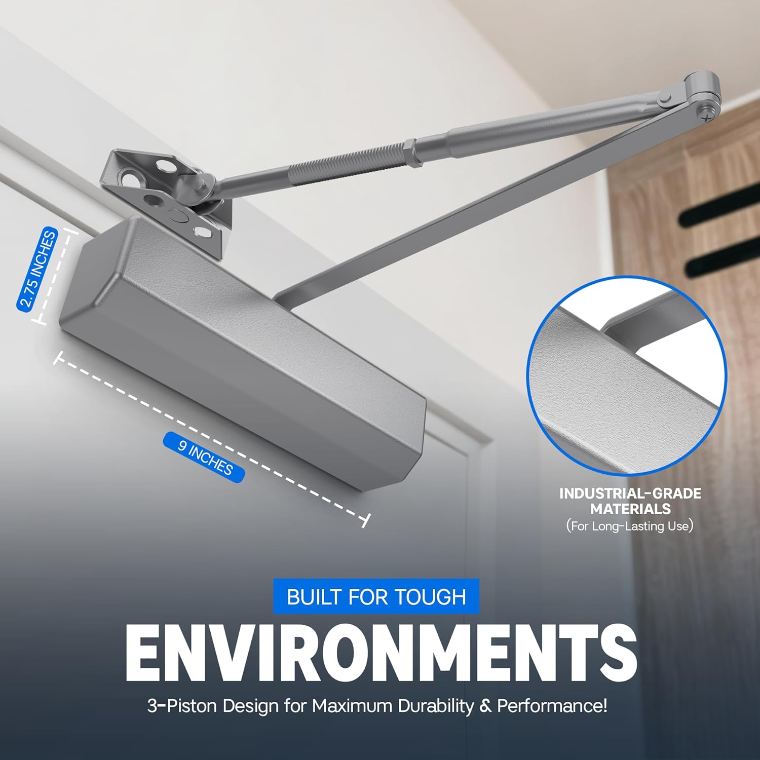 All-in-One Solution – The Ultimate Door Closer for Every Need | Whether you need a door closers heavy duty for a storefront, a heavy duty commercial door closer for a public facility, or a commercial door closer for everyday use, this model is the perfect fit. With adjustable settings, heavy-duty materials, and multiple mounting options, it’s the best choice for durability, safety, and performance.