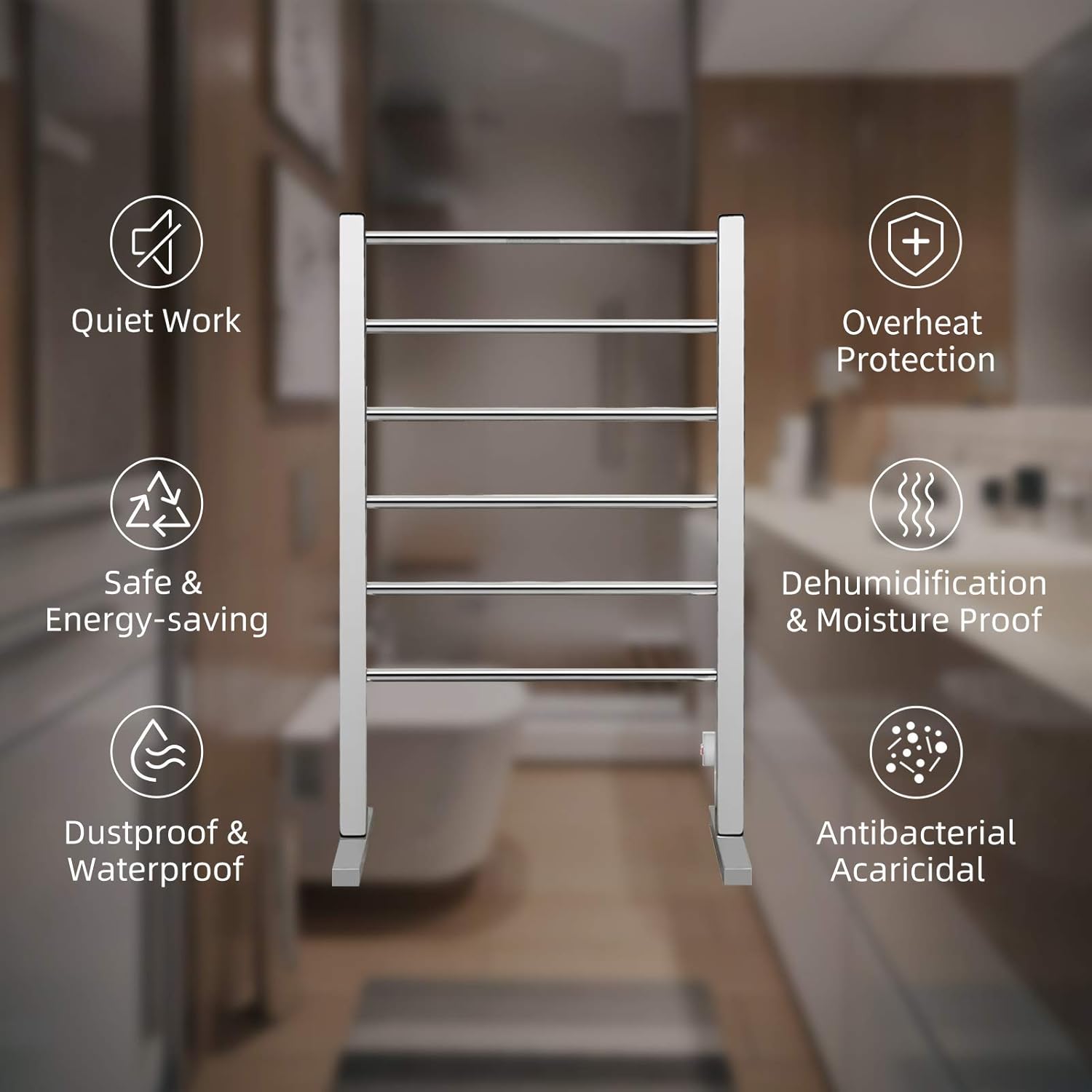 SHARNDY Portable Electric Towel Warmer ETW78-1 Freestanding Drying Rack for Home Bathroom Stainless Steel Brushed Nickel, 6 Bars, 65W