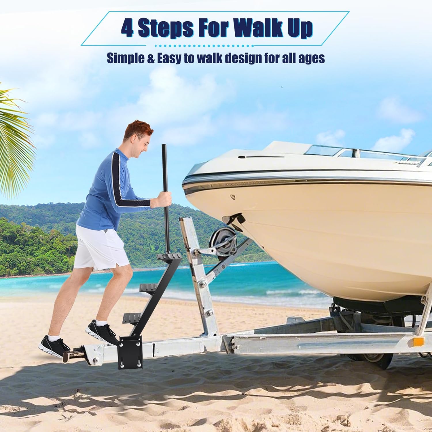 Universal Boat Steps for Trailer Designed for versatile compatibility, this marine-grade step mount fits most boat trailer railings, including heavy-duty railing up to 4\' x 6\' . Its adjustable design ensures a secure and stable installation on a wide range of trailer rails. Crafted for durability and ease of use, it provides a reliable stepping solution for your boat needs.