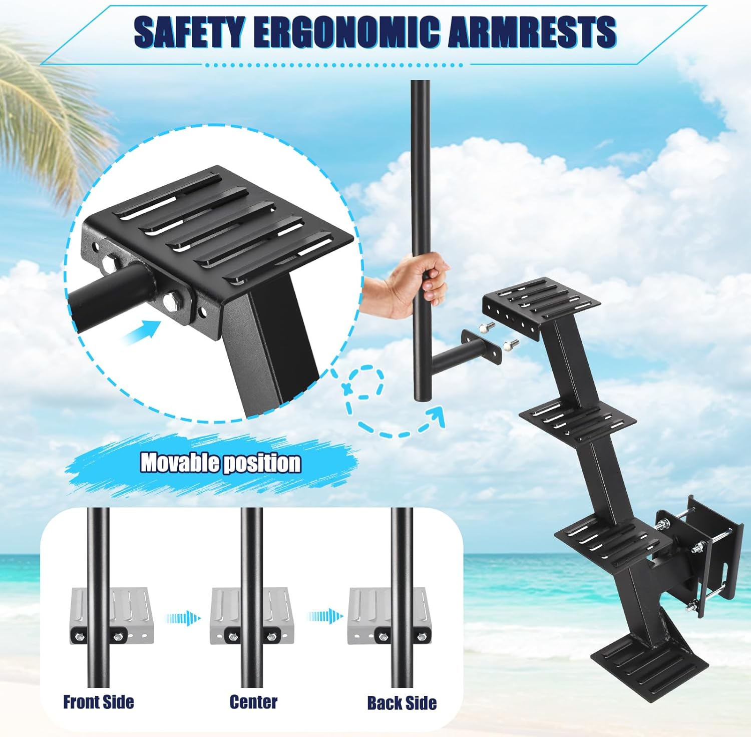 High Load-bearing SupportThis boat trailer step mount is welded from an upgraded one-piece holder structure, which supported by a sturdy rectangular plate that holds the step mount securely in place. Utilizing a steel beam with the mount`s unique adjustable holes to hold it firmly in place.