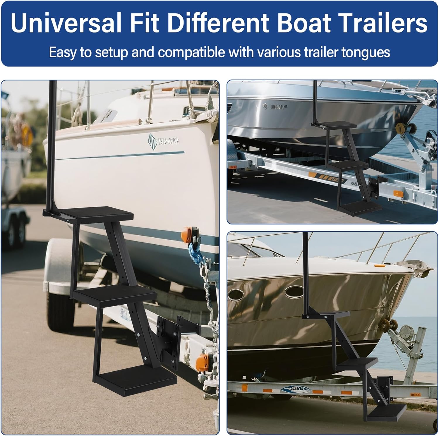 Universal Fit: The bass boat trailer steps has multiple mounting holes and fits trailer tongues from 3\' to 5\' wide and up to 6\' high, making it a highly compatible accessory and perfect for bass boat trailers, pontoon boat trailers and RVs