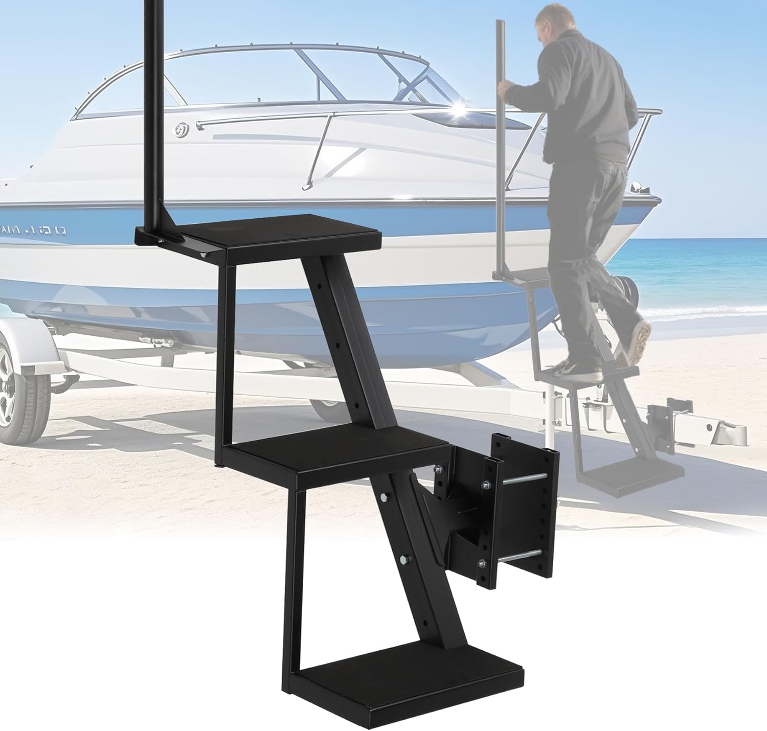High Durability: The boat steps for trailer are made from high quality structural steel with black powder coated finish, which is durable, sturdy, rust resistant, ensuring long lasting use and making it safe and easy to access your boat